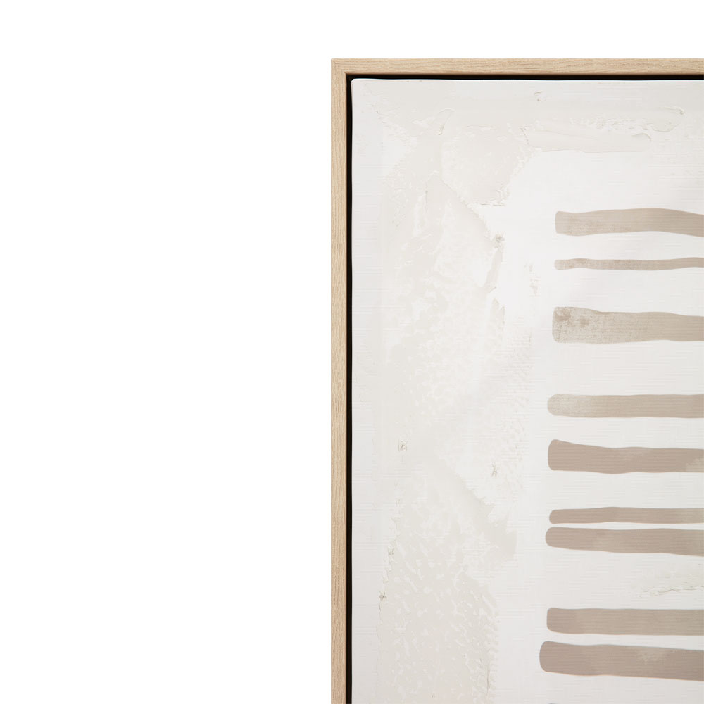 Ο πίνακας RAYA B, σε καμβά με φυσική ξύλινη κορνίζα, δημιουργεί έναν καθαρό minimal χαρακτήρα μέσα από τις λεπτές καφέ γραμμές του. Η σύνθεση παραπέμπει σε ισορροπία και τάξη, ιδανική για χώρους που θέλουν να αναδείξουν κομψότητα. Με διαστάσεις 100x100x4 cm, αποτελεί statement piece για μεγαλύτερους τοίχους. Ταιριάζει σε καθιστικό, χώρους γραφείων ή μοντέρνα ξενοδοχειακά περιβάλλοντα.