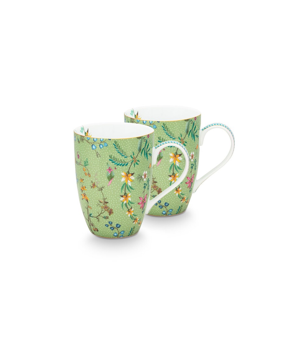 PIP STUDIO ΚΟΥΠΑ ΣΕΤ ΤΩΝ 2 ΑΠΟ ΠΟΡΣΕΛΑΝΗ JOLIE FLOWERS ΠΡΑΣΙΝΟ 350ML - 51002302