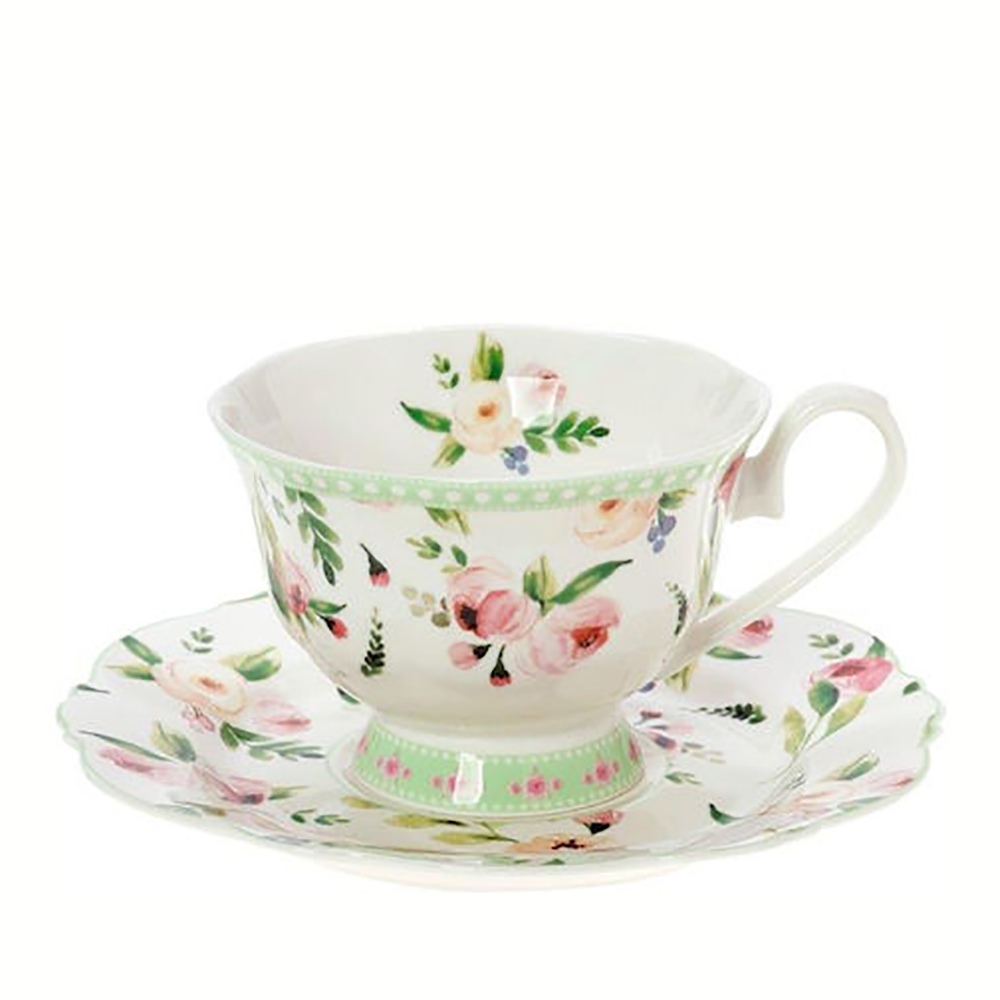 Φλιτζάνι/Πιατάκι Τσαγιού Primavera φλοράλ πράσινο 200cc.