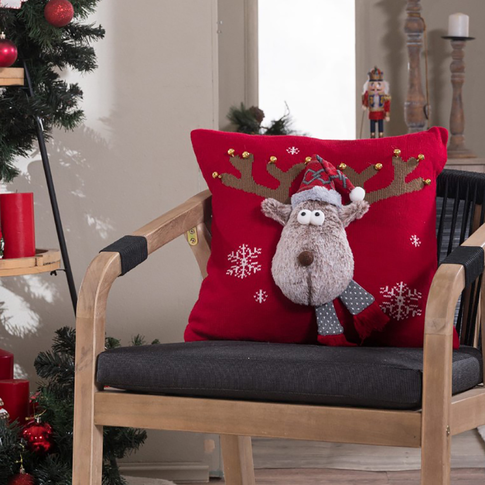ΧΡΙΣΤΟΥΓΕΝΝΙΑΤΙΚH ΔΙΑΚΟΣΜΗΤΙΚΗ ΜΑΞΙΛΑΡΟΘΗΚΗ ΜΕ ΤΑΡΑΝΔΟ ΚΟΚΚΙΝΟ ΧΡΩΜΑ ΔΙΑΣΤΑΣΗΣ 45Χ45ΕΚ.(ΧΩΡΙΣ ΓΕΜΙΣΗ)