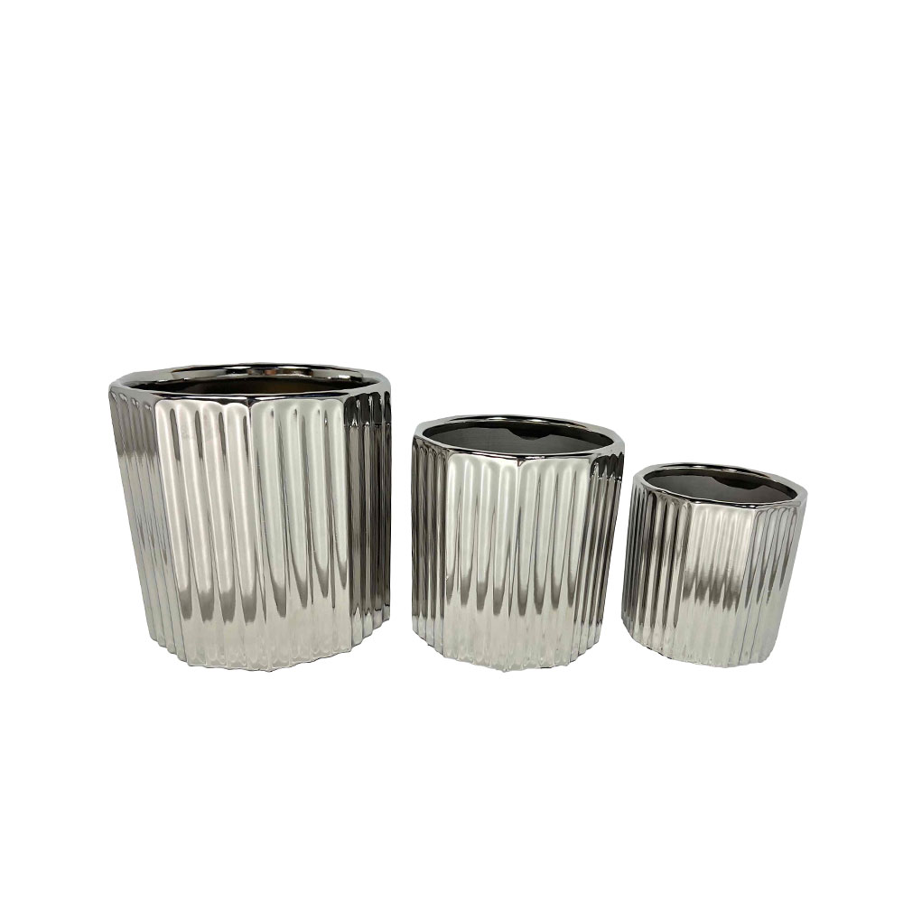 Το ARGENTO κασπώ Set 3τμχ διαθέτει μοντέρνο ασημί φινίρισμα και καθαρές γραμμές που ταιριάζουν ιδανικά σε contemporary και industrial διακόσμηση. Το compact μέγεθος είναι ιδανικό για μικρά φυτά, succulents ή για styling σε ράφια, βοηθητικά τραπέζια και reception counters. Η μεταλλιζέ λάμψη προσθέτει διακριτική πολυτέλεια, δίνοντας έναν elegant και φωτεινό χαρακτήρα στον χώρο.