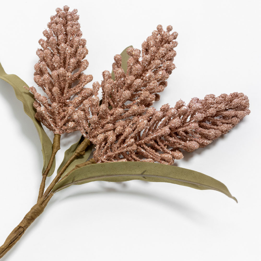 Μικρό αλλά εντυπωσιακό τεχνητό λουλούδι με συμπαγή άνθη σε απαλό ροζ χρώμα και φυσικής όψης πράσινα φύλλα. Η αφρώδης υφή του προσδίδει βάθος και αυθεντικότητα, καθιστώντας το ιδανικό για διακόσμηση βάζων, στεφανιών ή εποχιακών διακοσμήσεων.