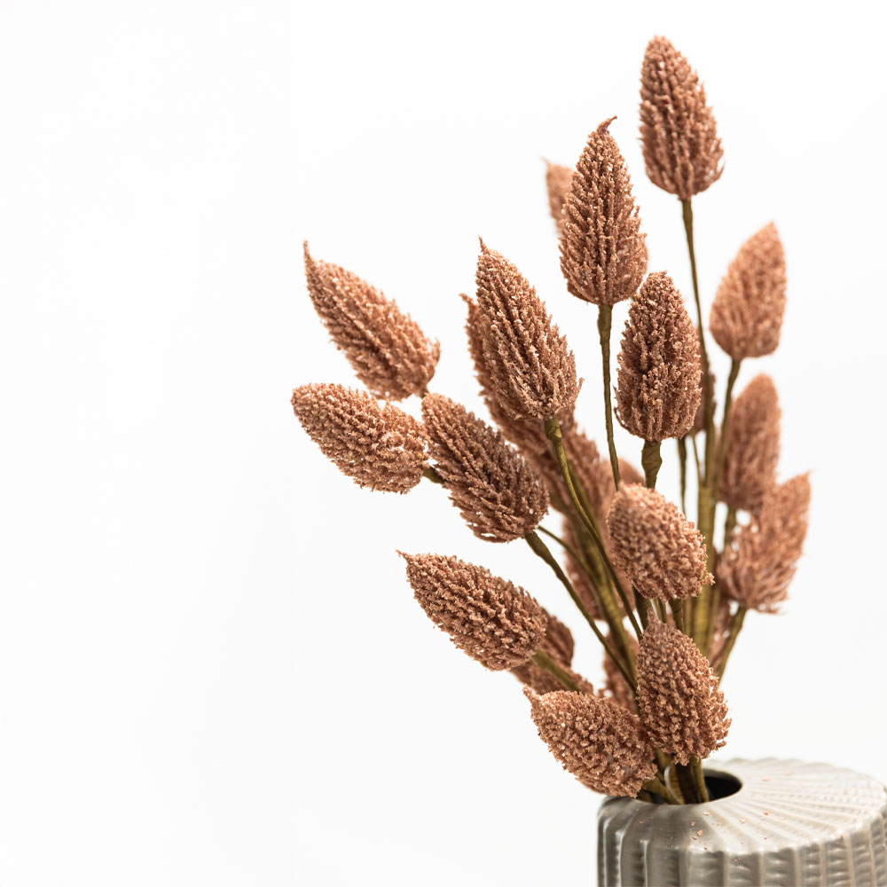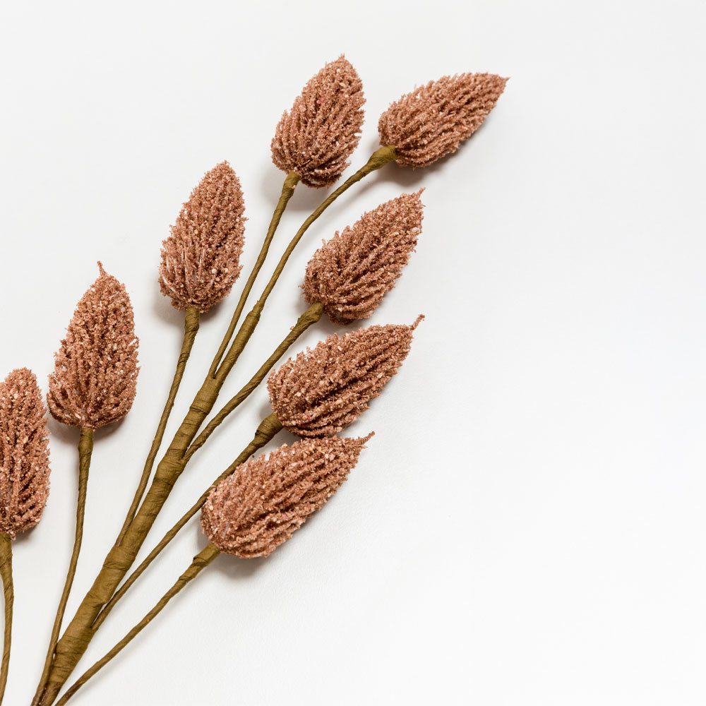 Εντυπωσιακό τεχνητό λουλούδι με πολλαπλές ροζ κεφαλές από αφρώδες υλικό σε φυσικό στέλεχος. Κατάλληλο για σύνθεση σε βάζα ή για εποχική διακόσμηση, αποπνέει ζεστασιά και κομψότητα.
