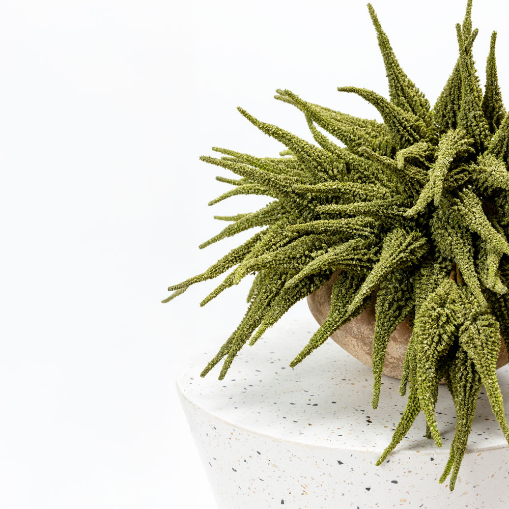 Το AROMA WISHPER είναι ένα μικρό τεχνητό λουλούδι που δίνει στον χώρο μια αίσθηση φρεσκάδας και φυσικής ζωντάνιας. Τα μακριά, λεπτά φύλλα του σε πράσινη απόχρωση ανοίγουν όμορφα σαν μικρό μπουκέτο και φωτίζουν τη διακόσμηση χωρίς να την βαραίνουν.Με ύψος 30cm, ταιριάζει ιδανικά σε μικρά βάζα, τραπεζάκια, ράφια ή διακοσμητικούς δίσκους, μόνο του ή συνδυαστικά με άλλα λουλούδια. Παραμένει πάντα όμορφο και τακτοποιημένο, χωρίς καμία ανάγκη φροντίδας.