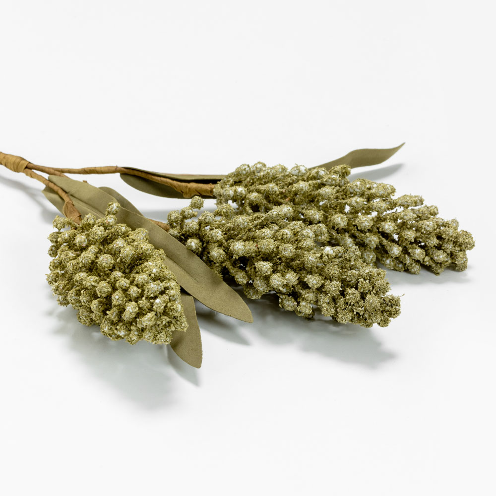 Το AROMA WISHPER είναι ένα τεχνητό λουλούδι με εμφάνιση σταχυών, που φέρνει στον χώρο μια φυσική, γήινη αίσθηση. Οι μικρές, ανάγλυφες κεφαλές του σε πράσινες αποχρώσεις, από foam, θυμίζουν αποξηραμένο φυτό και δίνουν χαρακτήρα χωρίς ένταση.Με ύψος 33cm, είναι ιδανικό για μικρά βάζα, διακοσμητικά μπουκέτα, ράφια ή συνθέσεις με φυσικά υλικά. Η κατασκευή από foam και PVC το διατηρεί σταθερό και όμορφο στον χρόνο, χωρίς καμία ανάγκη φροντίδας.