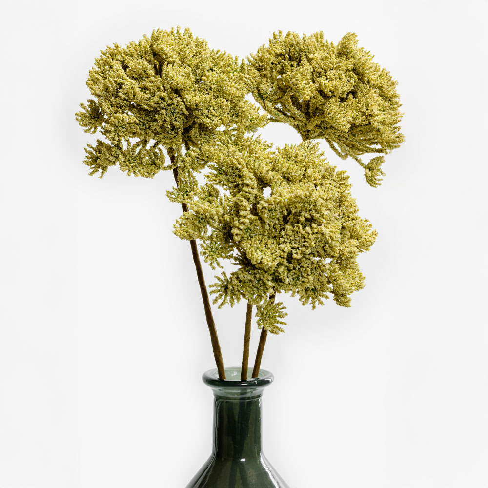 Το AROMA WISHPER είναι ένα μικρό, διακριτικό λουλούδι που φέρνει μια ήρεμη αίσθηση φύσης στον χώρο. Με λεπτό στέλεχος και μια απαλή, φωτεινή κορυφή σε πρασινοκίτρινη απόχρωση, μοιάζει με αγριολούλουδο και «στέκεται» όμορφα χωρίς να τραβάει την προσοχή.Με ύψος 60cm, ταιριάζει τέλεια σε ψηλά βάζα, μόνο του για ένα απλό αποτέλεσμα ή μαζί με άλλα λουλούδια για πιο φυσικές συνθέσεις. Παραμένει πάντα όμορφο, χωρίς φροντίδα και χωρίς απαιτήσεις.