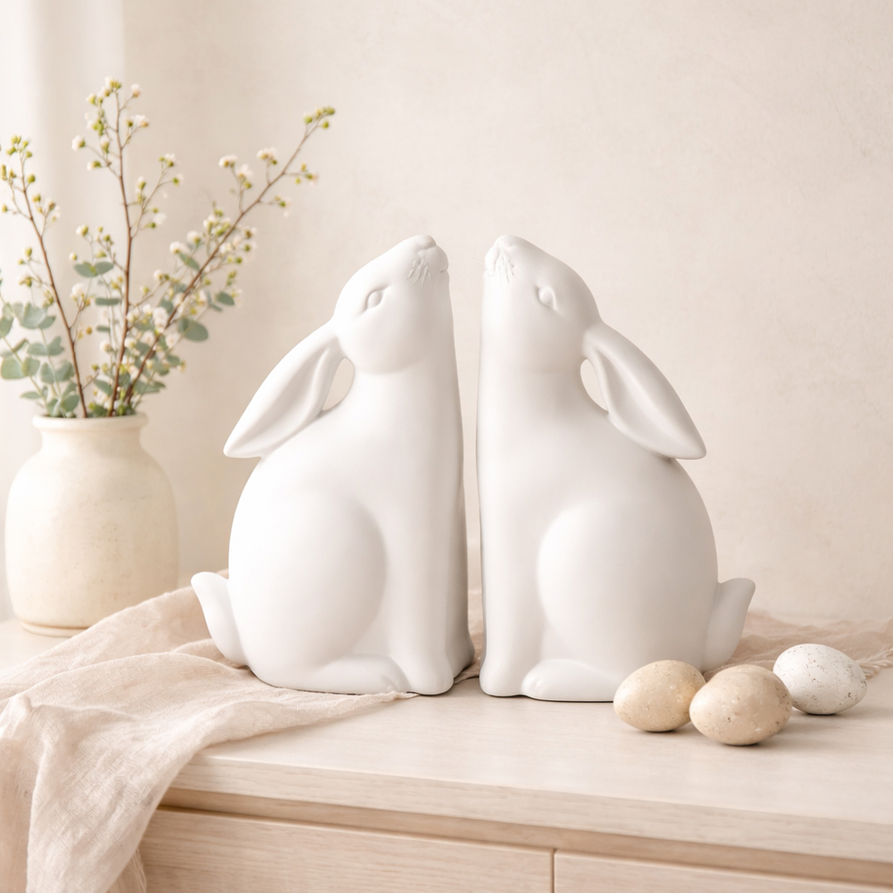 Ο λευκός βιβλιοστάτης Bun Bun, κατασκευασμένος από polyresin,με τα χαριτωμένα κουνελάκια είναι ένα παιχνιδιάρικο αλλά και πρακτικό διακοσμητικό αντικείμενο για τον χώρο σας. Tο σετ περιλαμβάνει δύο βιβλιοστάτες σε σχήμα κουνελιών, προσφέροντας μια ευχάριστη και φιλόξενη αίσθηση σε οποιοδήποτε δωμάτιο. Η σύγχρονη σχεδίαση τους, μαζί με τη λειτουργικότητα τους, τους καθιστά ιδανικούς για να οργανώσετε τα βιβλία σας. Ο βιβλιοστάτης Bun Bun είναι η τέλεια επιλογή για να προσθέσετε μία διασκεδαστική και σύγχρονη πινελιά στη διακόσμηση του σπιτιού ή του γραφείου σας.
