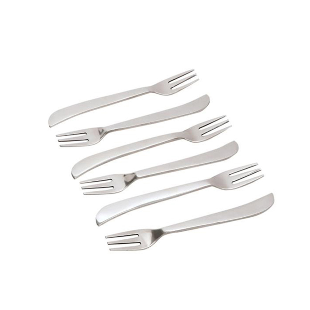 Τα πιρούνια γλυκού CURVE διαθέτουν καθαρή, σύγχρονη γραμμή και ασημί λάμψη. Είναι κατάλληλα για γλυκά, φρούτα και μικρές λιχουδιές. Ένα διακριτικό κομμάτι που ολοκληρώνει κάθε μοντέρνο τραπέζι.