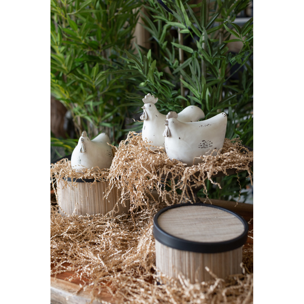 Το διακοσμητικό GALINHA σε σχήμα κότας, από polyresin, με φινίρισμα σε μπεζ παλ και αντικέ λεπτομέρειες, αποπνέει rustic γοητεία και ζεστασιά. Ιδανικό για country-style κουζίνες, πασχαλινές συνθέσεις ή vintage γωνιές με χιούμορ και νοσταλγία.