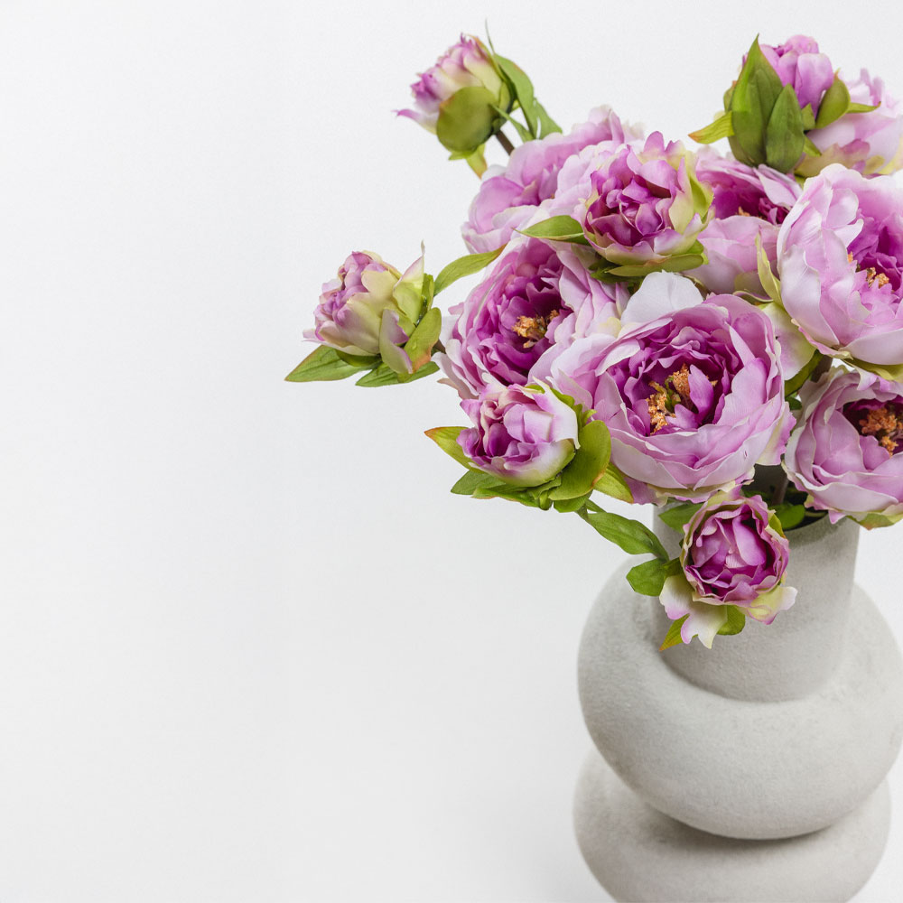 Το τεχνητό λουλούδι HALF MOON PEONY 43cm σε απαλές λιλά και λευκές αποχρώσεις αποπνέει ρομαντισμό και ηρεμία. Ιδανικό για shabby chic ή vintage συνθέσεις, δημιουργεί μια απαλή και ονειρική αίσθηση στον χώρο. Η ρεαλιστική υφή των πετάλων από πολυεστέρα προσδίδει φυσικότητα και κομψότητα. Μπορεί να τοποθετηθεί σκέτο σε ένα γυάλινο βάζο ή να ενσωματωθεί σε ανθοσυνθέσεις με λευκούς, γκρι και φυσικούς τόνους για να δημιουργήσει μια ρομαντική και ήρεμη ατμόσφαιρα.