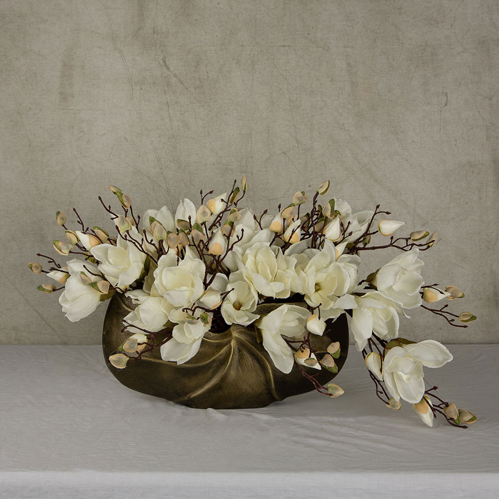 Το βάζο IWA 2 σε χρυσό αντικέ φινίρισμα, κατασκευασμένο από υψηλής ποιότητας αλουμίνιο, εντυπωσιάζει με τη γλυπτική του μορφή και τη στιβαρή μεταλλική κατασκευή του. Το αλουμίνιο προσφέρει αντοχή στη φθορά, δεν οξειδώνεται εύκολα και διατηρεί τη λάμψη του στο χρόνο, καθιστώντας το ιδανικό για επαγγελματικούς χώρους. Το χρυσό αντικέ αποτέλεσμα δημιουργεί μια αίσθηση πολυτέλειας και ζεστασιάς, αναβαθμίζοντας κάθε σύγχρονο ή industrial διακοσμητικό ύφος. Ιδανικό για σαλόνια, τραπεζαρίες, ξενοδοχεία, γραφεία και χώρους υποδοχής, όπου λειτουργεί ως statement decorative element.