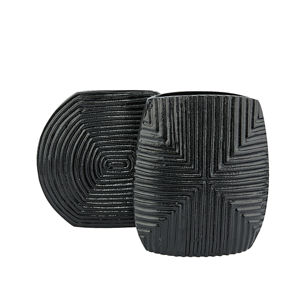 Το βάζο LINEAR εντυπωσιάζει με τη συμπαγή του φόρμα και την έντονη ανάγλυφη υφή που δημιουργούν οι κάθετες και οριζόντιες γραμμές στην επιφάνειά του. Κατασκευασμένο από αλουμίνιο σε μαύρη απόχρωση, αποπνέει μοντέρνο χαρακτήρα και δυναμική. Με διαστάσεις 21?8?24 cm, είναι ιδανικό για κονσόλες, μπουφέδες, ράφια ή coffee tables, είτε μόνο του είτε συνδυαστικά με άλλα διακοσμητικά της ίδιας αισθητικής. Ταιριάζει απόλυτα σε σύγχρονους, minimal ή industrial χώρους, προσθέτοντας υφή, βάθος και μια αρχιτεκτονική πινελιά στη διακόσμηση.