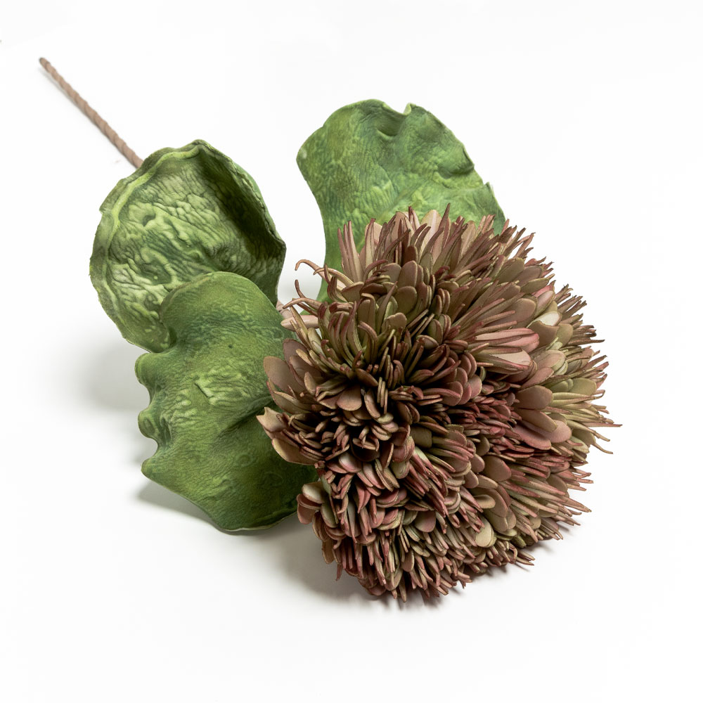 Ρεαλιστικό και εντυπωσιακό τεχνητό λουλούδι με ύψος 87cm, σε ροζ-μπεζ φυσικές αποχρώσεις και λεπτομέρειες που θυμίζουν άνθος αγκινάρας. Κατασκευασμένο από EVA Foam, με ανάγλυφα φύλλα και ευέλικτο στέλεχος, αποτελεί μια μοναδική πρόταση για floral συνθέσεις με vintage ή rustic χαρακτήρα.