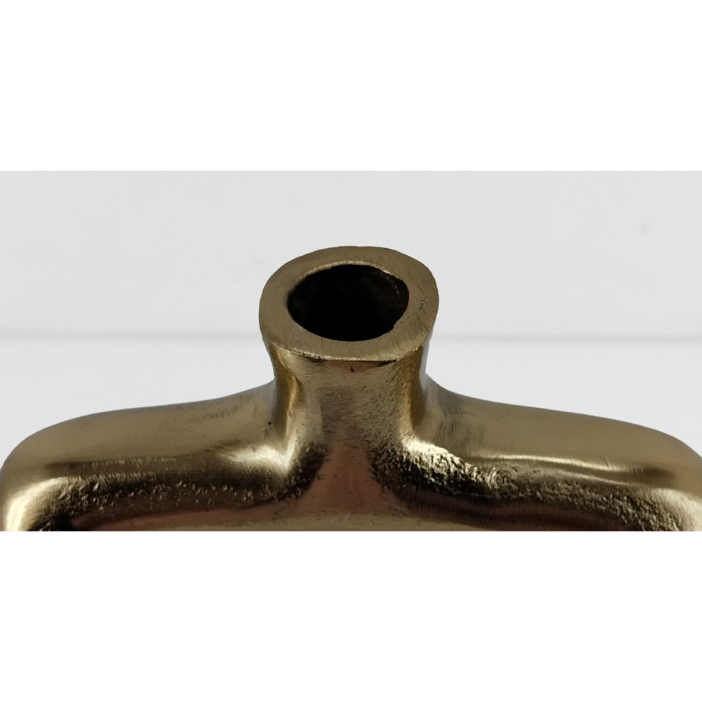 Το βάζο NAZAR ξεχωρίζει για τη σύγχρονη, αρχιτεκτονική του φόρμα. Το ορθογώνιο άνοιγμα δημιουργεί ένα δυναμικό παιχνίδι κενού και όγκου, προσφέροντας sculptural αισθητική. Το χρυσό φινίρισμα δίνει ζεστασιά και πολυτέλεια στον χώρο. Ιδανικό για minimal styling σε κονσόλες, ράφια ή coffee tables.