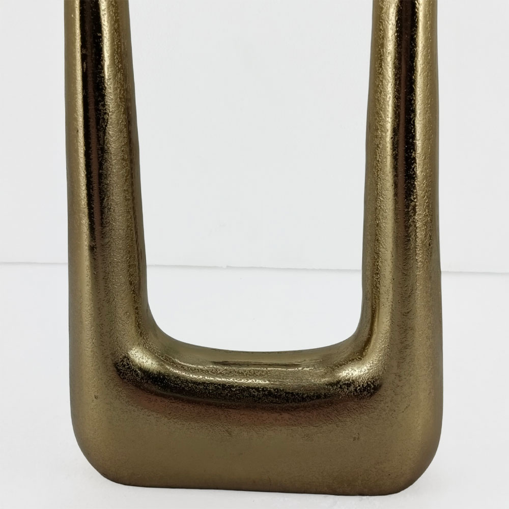 Το NAZAR έχει αρχιτεκτονικό χαρακτήρα με τετράγωνο κεντρικό άνοιγμα που τραβάει το βλέμμα. Η χρυσή λάμψη δημιουργεί premium αισθητική και προσθέτει πολυτέλεια στον χώρο. Το αλουμίνιο προσφέρει σταθερότητα και ελαφριά κατασκευή. Λειτουργεί ως αυτόνομο διακοσμητικό ή ως βάση για λεπτά κλαδιά.
