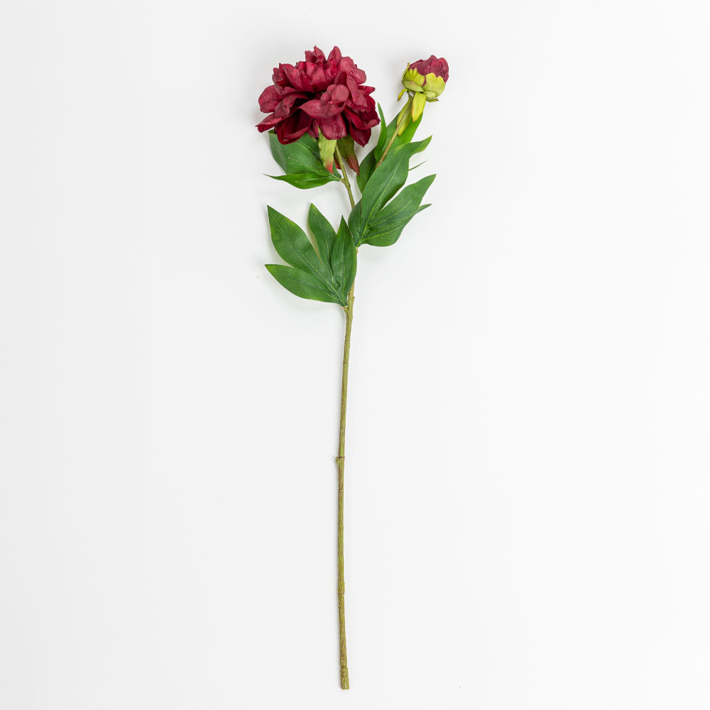 Το μπορντώ τεχνητό λουλούδι PEONY 67cm αποτελεί μια εντυπωσιακή επιλογή που θα δώσει δυναμισμό και ξεχωριστό στυλ σε κάθε χώρο. Ιδανικό για μίνιμαλ και industrial διακοσμήσεις, συνδυάζεται άψογα με σκούρες αποχρώσεις αλλά και πιο ουδέτερες, δημιουργώντας έτσι έντονη αντίθεση. Τα πέταλά του, χάρη στην κατασκευή του από πολυεστέρα, έχουν ρεαλιστική όψη, δημιουργώντας μια αίσθηση βάθους και κομψότητας. Κατάλληλη επιλογή που τραβάει τα βλέμματα, για τη διακόσμηση οικιακού αλλά και επαγγελματικού περιβάλλοντος.