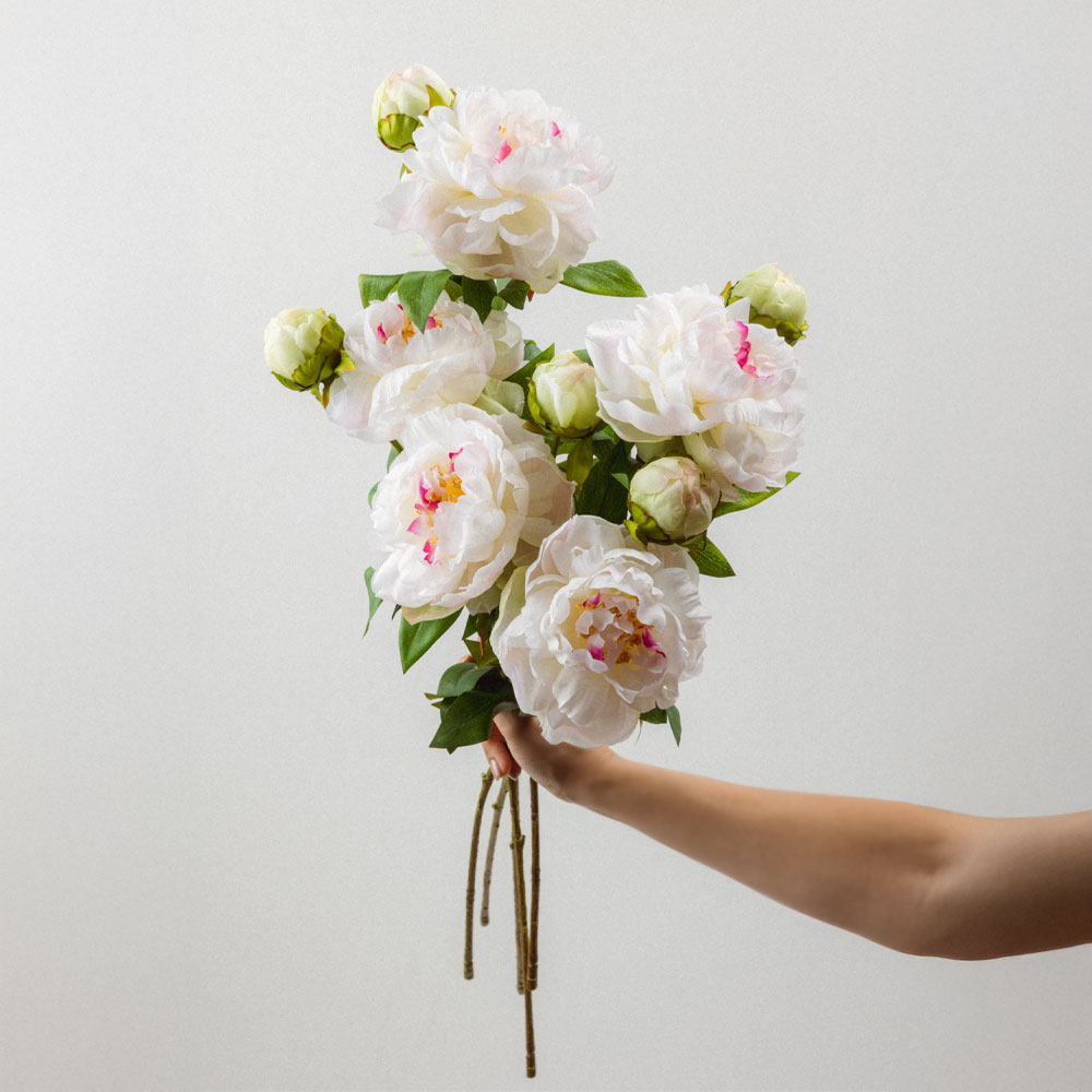Το PEONY 67cm σε λευκό-ροζ χρωματισμό προσφέρει μια ισορροπημένη, ρομαντική νότα που ταιριάζει σε κάθε στυλ διακόσμησης. Η αρμονική μετάβαση από το λευκό στο απαλό ροζ δημιουργεί ένα φρέσκο και ανάλαφρο αποτέλεσμα. Ιδανικό για να στολίσει υπνοδωμάτια, τραπεζαρίες ή boutique επαγγελματικούς χώρους. Τα ρεαλιστικά του πέταλα από πολυεστέρα δίνουν την αίσθηση φυσικού άνθους και προσθέτουν φινέτσα σε κάθε σύνθεση.