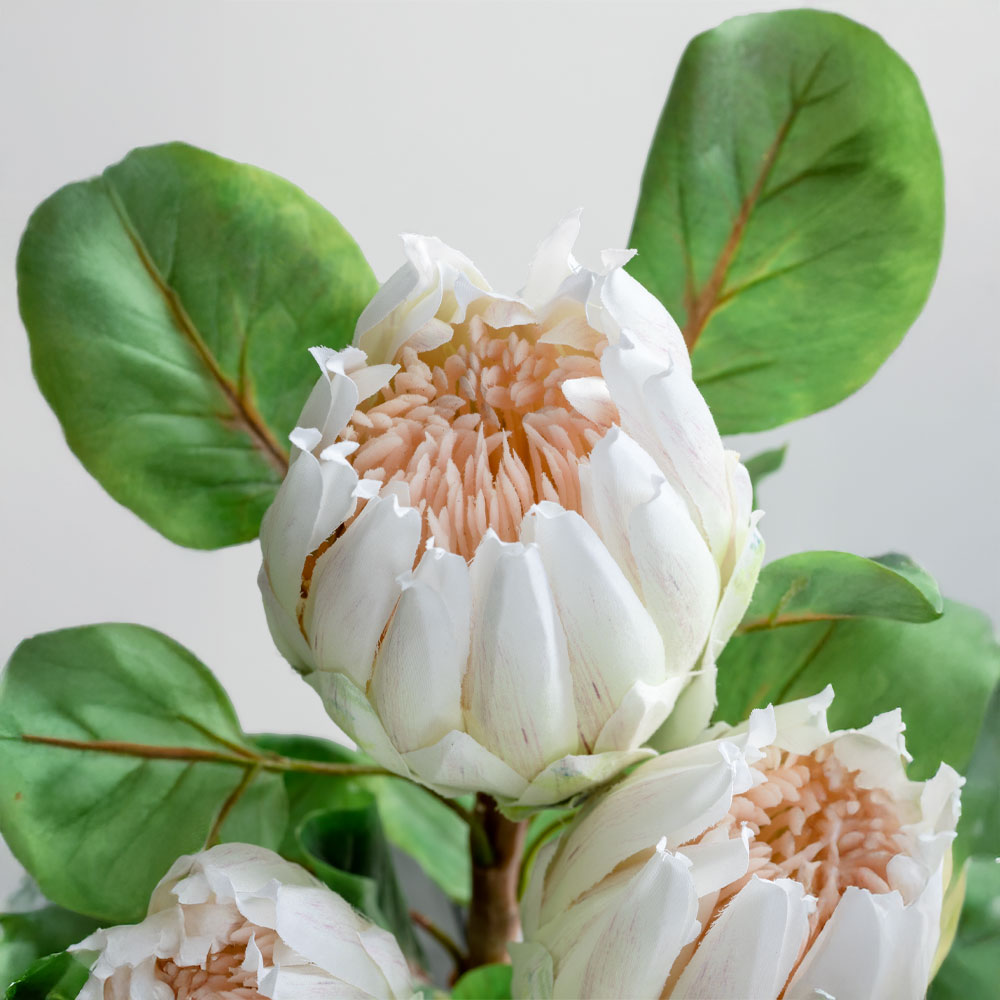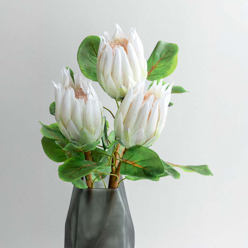 Το τεχνητό λουλούδι PROTEAX 68cm σε λευκή απόχρωση είναι η απόλυτη επιλογή για μια φυσική διακόσμηση με στυλ και διάρκεια. Το εντυπωσιακό και αληθοφανές φύλλωμά του, από πολυεστέρα, θα αναδείξει τη μοντέρνα αισθητική του χώρου, ενώ θα του δώσει μια πιο ανανεωμένη ενέργεια που θα συζητηθεί. Ιδανικό να προσθέσει, μόνο του ή σε ανθοσύνθεση, μια γήινη και φωτεινή πινελιά σε οποιοδήποτε σημείο οικιακών και επαγγελματικών χώρων, χωρίς τις απαιτήσεις συντήρησης των φυσικών φυτών.