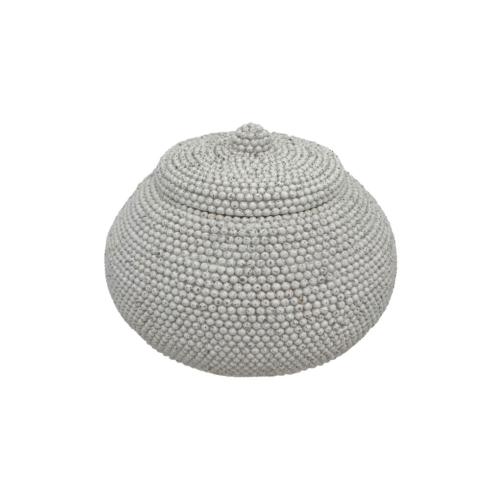 Το δοχείο αποθήκευσης ROSARY L αποτελεί μια κομψή προσθήκη που συνδυάζει πρακτικότητα και αισθητική. Κατασκευασμένο από polyresin σε off white απόχρωση, ξεχωρίζει για την ανάγλυφη υφή του που μοιάζει χειροποίητο, προσθέτοντας διακριτικό χαρακτήρα στον χώρο. Το καπάκι του διασφαλίζει ασφαλή αποθήκευση μικρών αντικειμένων, ενώ οι διαστάσεις του το καθιστούν ιδανικό για το σαλόνι, την τραπεζαρία ή το υπνοδωμάτιο. Ένα διακοσμητικό στοιχείο που ενσωματώνεται αρμονικά σε κάθε σύγχρονο περιβάλλον, προσφέροντας οργάνωση με στυλ.
