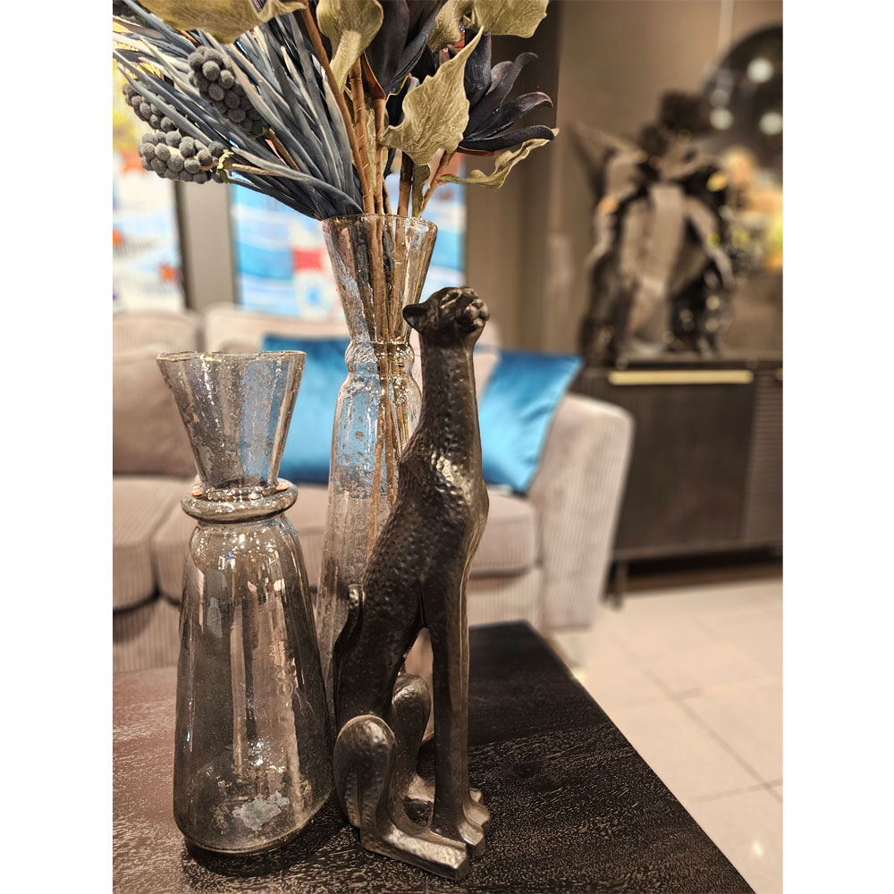 Ο επιβλητικός πάνθηρας Saya, θα κλέψει τις εντυπώσεις σε όποιον χώρο και να τον τοποθετήσετε. Το κομψό μαύρο ματ χρώμα, σε συνδυασμό με τις προσεγμένες ανάγλυφες λεπτομέρειες, αναδεικνύουν ακόμα περισσότερο την αριστοκρατική του στάση, ενώ η κατασκευή από polyresin το καθιστά ιδιαίτερα ανθεκτικό στο πέρασμα του χρόνου.