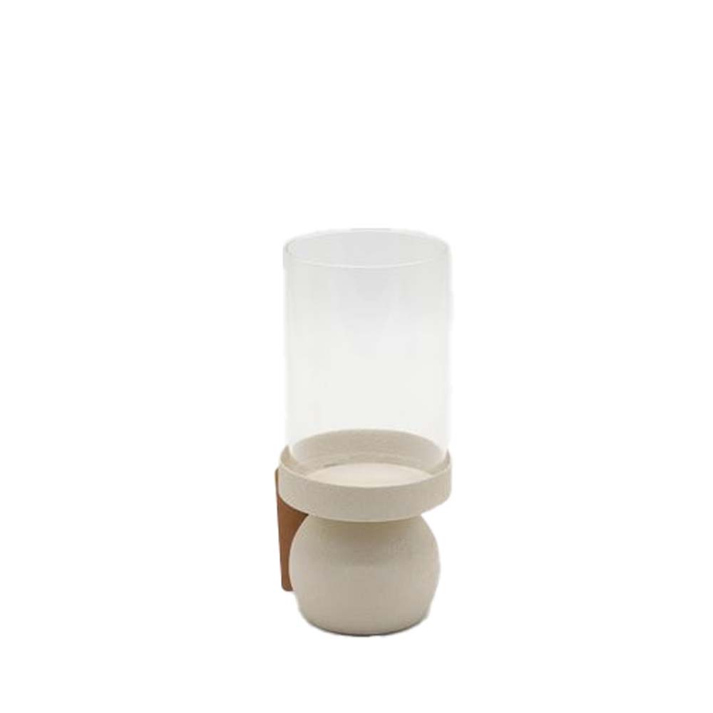 Το VELA κηροπήγιο ύψους 20 cm αποπνέει διακριτική κομψότητα και minimal αισθητική. Ο συνδυασμός μεταλλικής βάσης και γυάλινου κυλίνδρου δημιουργεί ζεστό και ομοιόμορφο φωτισμό. Η μπεζ απόχρωση προσθέτει φυσική γοητεία και ταιριάζει σε κάθε διακόσμηση. Ιδανικό για τραπέζια, κονσόλες ή χώρους φιλοξενίας.