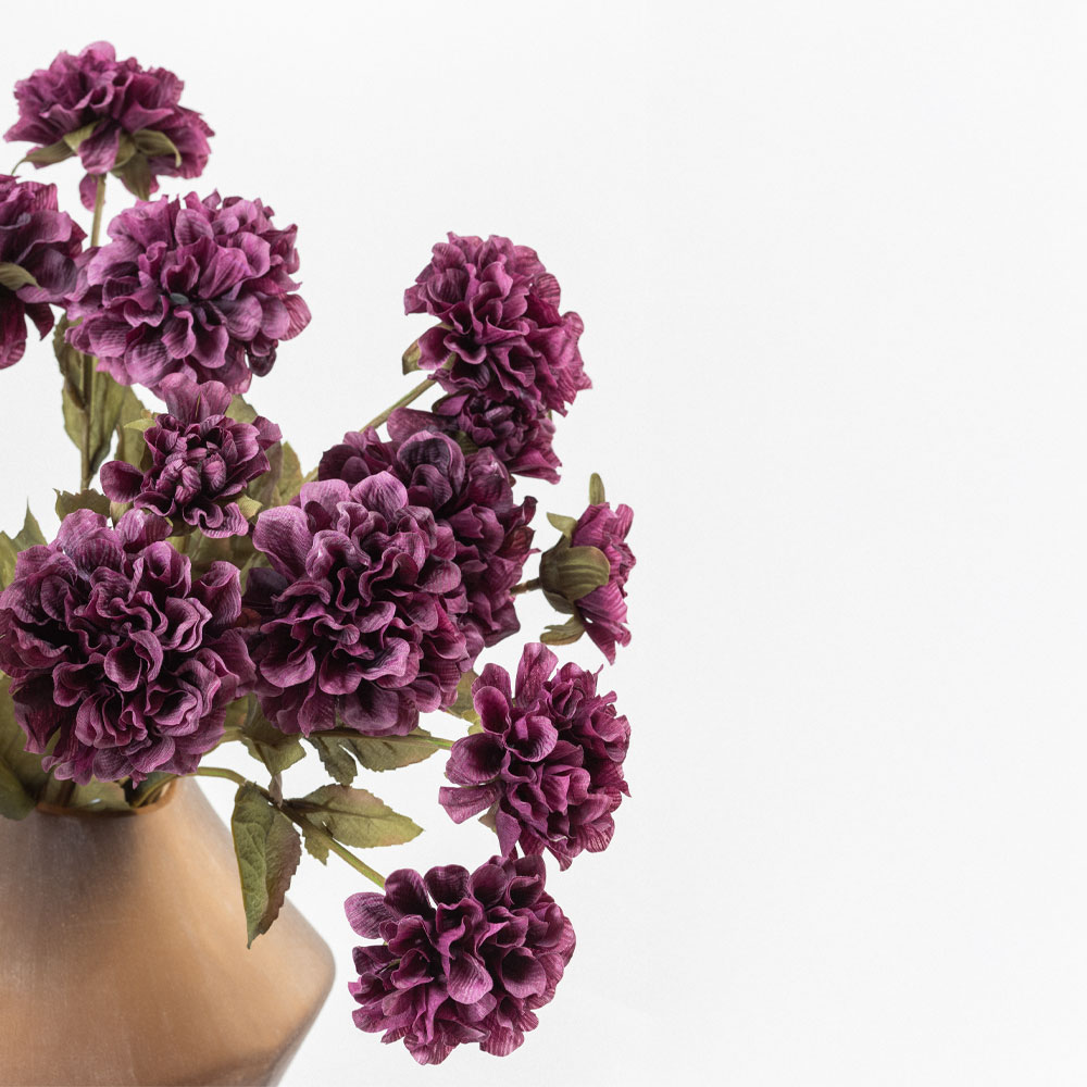 Το μωβ τεχνητό λουλούδι ZINNIA 52cm είναι η ιδανική επιλογή για χώρους που θέλουν να αναδείξουν μια πιο καλλιτεχνική και εκλεπτυσμένη αισθητική. Η βαθιά του απόχρωση σε συνδυασμό με τα ρεαλιστικά φύλλα από πολυεστέρα προσδίδει πολυτέλεια και φινέτσα. Ιδανικό για σκέτη παρουσία σε βάζο, αλλά και για συνθέσεις με ουδέτερους ή μεταλλικούς τόνους που δημιουργούν έντονες αντιθέσεις και μοναδική ατμόσφαιρα. Θα τραβήξει όλα τα βλέμματα και θα προσθέσει χαρακτήρα στον χώρο.
