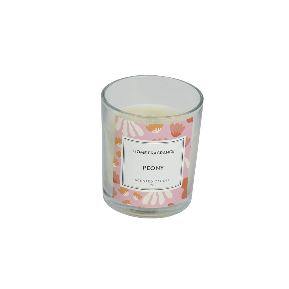 ΑΡΩΜΑΤΙΚΟ ΚΕΡΙ ΣΕ ΓΥΑΛΙΝΟ ΔΟΧΕΙΟ PEONY ΔΙΑΣΤΑΣΗΣ Δ8.20ΧΗ9.8ΕΚ.