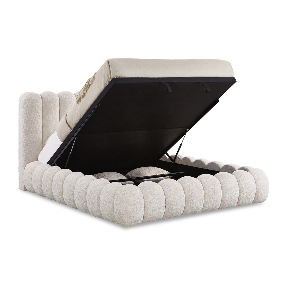 Το στρώμα «κάθεται» πάνω σε επιφάνεια από μοριοσανίδα, η οποία ανασηκώνεται με μεταλλικό μηχανισμό ασφαλείας με αμορτισέρ που κρατάει το τελάρο ανασηκωμένο για όσο χρόνο χρειάζεται, προσφέροντας έναν μεγάλο αποθηκευτικό χώρο, ο οποίος φυσικά καταλαμβάνει όλο τον χώρο μέχρι το δάπεδο.