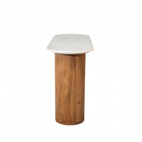 Αναδείξτε την πολυτέλεια και τη φυσική κομψότητα του χώρου σας με την κονσόλα Organic Bitter. Κατασκευασμένη από ξύλο Mango σε ζεστή καρυδί απόχρωση, αποπνέει φυσική γοητεία και διαχρονική φινέτσα. Η επιφάνειά της από μάρμαρο προσδίδει μια αίσθηση εκλεπτυσμένης πολυτέλειας, δημιουργώντας έναν εντυπωσιακό συνδυασμό υλικών. Η κονσόλα Organic Bitter είναι ιδανική για χώρους που απαιτούν κομψότητα και λειτουργικότητα, όπως η είσοδος, το καθιστικό ή η τραπεζαρία. Με το μοναδικό της design και την υψηλή ποιότητα κατασκευής, αποτελεί μια ξεχωριστή προσθήκη που αναβαθμίζει τη διακόσμηση του σπιτιού ή του επαγγελματικού σας χώρου.