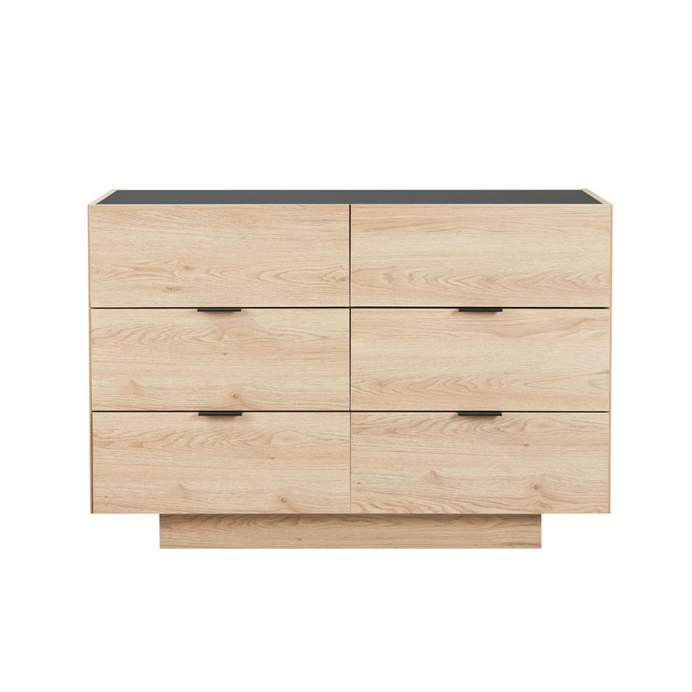 Η συρταριέρα Cubius συνδυάζει κομψότητα και πρακτικότητα, δημιουργώντας μια εντυπωσιακή προσθήκη για κάθε χώρο. Κατασκευασμένη από υψηλής ποιότητας μελαμίνη σε φυσική απόχρωση, διαθέτει έξι ευρύχωρα συρτάρια για οργανωμένη αποθήκευση. Η επιφάνειά της, διακοσμημένη με φιμέ μαύρο γυαλί, προσφέρει μια μοντέρνα και πολυτελή αισθητική, καθιστώντας τη ιδανική επιλογή για σαλόνια, υπνοδωμάτια και γραφεία με στυλ.
