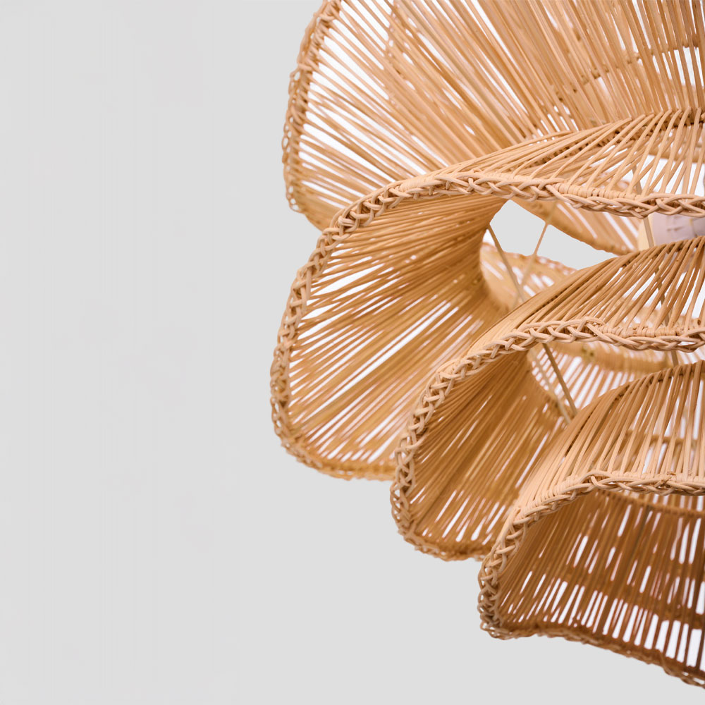 Το φωτιστικό οροφής AURORA ξεχωρίζει με τον φυσικό χαρακτήρα του rattan και τον μοντέρνο σχεδιασμό του, δημιουργώντας μια ζεστή και φιλόξενη ατμόσφαιρα σε κάθε χώρο. Με διαστάσεις 61x47cm, είναι ιδανικό για καθιστικά, τραπεζαρίες, εστιατόρια και boutique ξενοδοχεία που επιθυμούν να συνδυάσουν φυσικά υλικά με σύγχρονη αισθητική. Το λευκό καλώδιο προσθέτει μια φρέσκια και διακριτική νότα, ολοκληρώνοντας αρμονικά την εμφάνιση. Μια κομψή επιλογή φωτισμού για επαγγελματικούς και οικιακούς χώρους που δίνουν σημασία στη λεπτομέρεια και το στιλ.