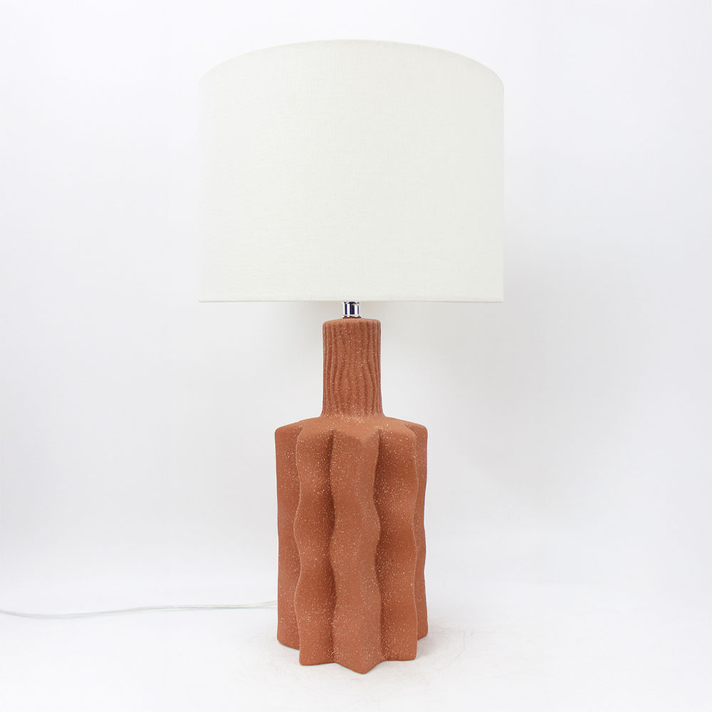 Το επιτραπέζιο φωτιστικό EGLI συνδυάζει κεραμική βάση σε ζεστή terracotta απόχρωση με λευκό λινό καπέλο, προσδίδοντας φυσικότητα και γήινη αρμονία. Με διαστάσεις βάσης 17x17xΥ36cm, είναι ιδανικό για κομοδίνα ή γραφεία. Το design του αποπνέει ζεστασιά και απλότητα, καθιστώντας το ιδανικό για σύγχρονους ή rustic χώρους.