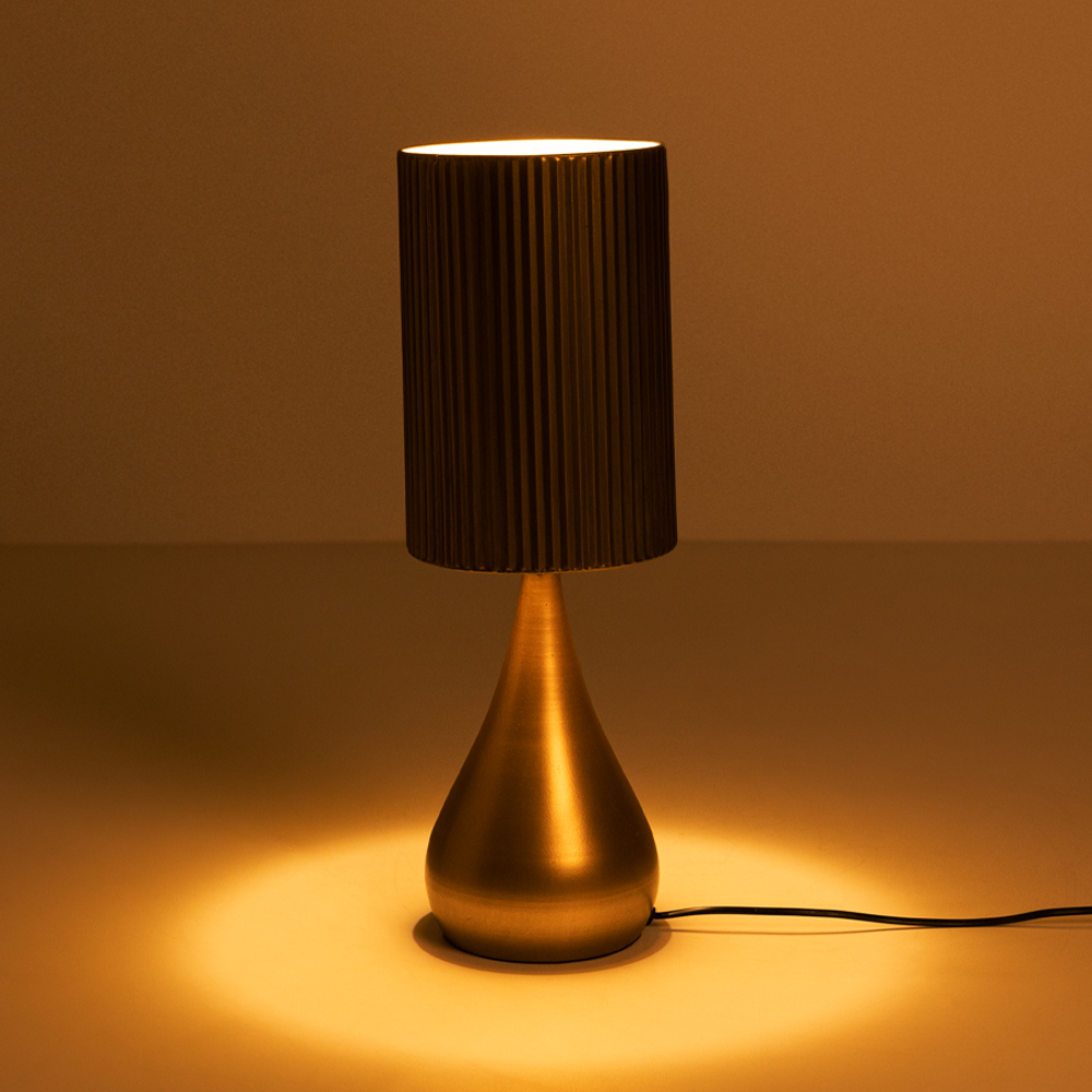 Το επιτραπέζιο φωτιστικό STALA σε brown gold φινίρισμα ξεχωρίζει για τη γλυπτική του σιλουέτα και τη διακριτική μεταλλική του λάμψη. Με ύψος 53,5 cm, λειτουργεί ιδανικά ως statement κομμάτι σε βοηθητικά τραπεζάκια, κονσόλες ή κομοδίνα, προσθέτοντας βάθος και χαρακτήρα στον χώρο. Η καθαρή, minimal μεταλλική κατασκευή του συνδυάζει κομψότητα και σύγχρονη αισθητική, καθιστώντας το ιδανική επιλογή για μοντέρνα, industrial ή refined minimal περιβάλλοντα.