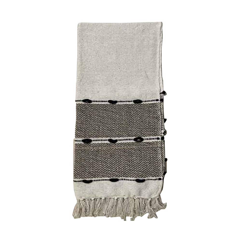 Το ριχτάρι Kayla είναι η ιδανική επιλογή για να προσθέσετε ζεστασιά και κομψότητα στον χώρο σας. Κατασκευασμένο από ένα φίνο μείγμα βαμβακιού και polyester, προσφέρει άνεση και ανθεκτικότητα, ενώ οι αποχρώσεις του λευκού και του μπεζ δημιουργούν μια φυσική και γήινη αίσθηση. Το διακριτικό boho μοτίβο και τα κρόσσια στις άκρες του προσδίδουν έναν αέρα εκλεπτυσμένης απλότητας, καθιστώντας το τέλειο για τον καναπέ, την πολυθρόνα ή το κρεβάτι σας. Ένα ριχτάρι που συνδυάζει λειτουργικότητα και στυλ με μοναδικό τρόπο.