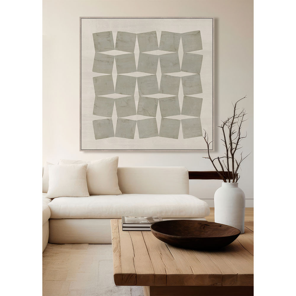 Ο πίνακας CHAINED διαθέτει αφαιρετικό γεωμετρικό pattern σε αποχρώσεις μπεζ και γκρι, αποπνέοντας αίσθηση ισορροπίας και ηρεμίας. Η φυσική ξύλινη κορνίζα αναδεικνύει το έργο και προσδίδει μια διακριτική, σύγχρονη αισθητική. Οι ουδέτεροι τόνοι επιτρέπουν εύκολο συνδυασμό με κάθε διακόσμηση. Με διαστάσεις 80?80?4 cm αποτελεί κομψή επιλογή για minimal χώρους.