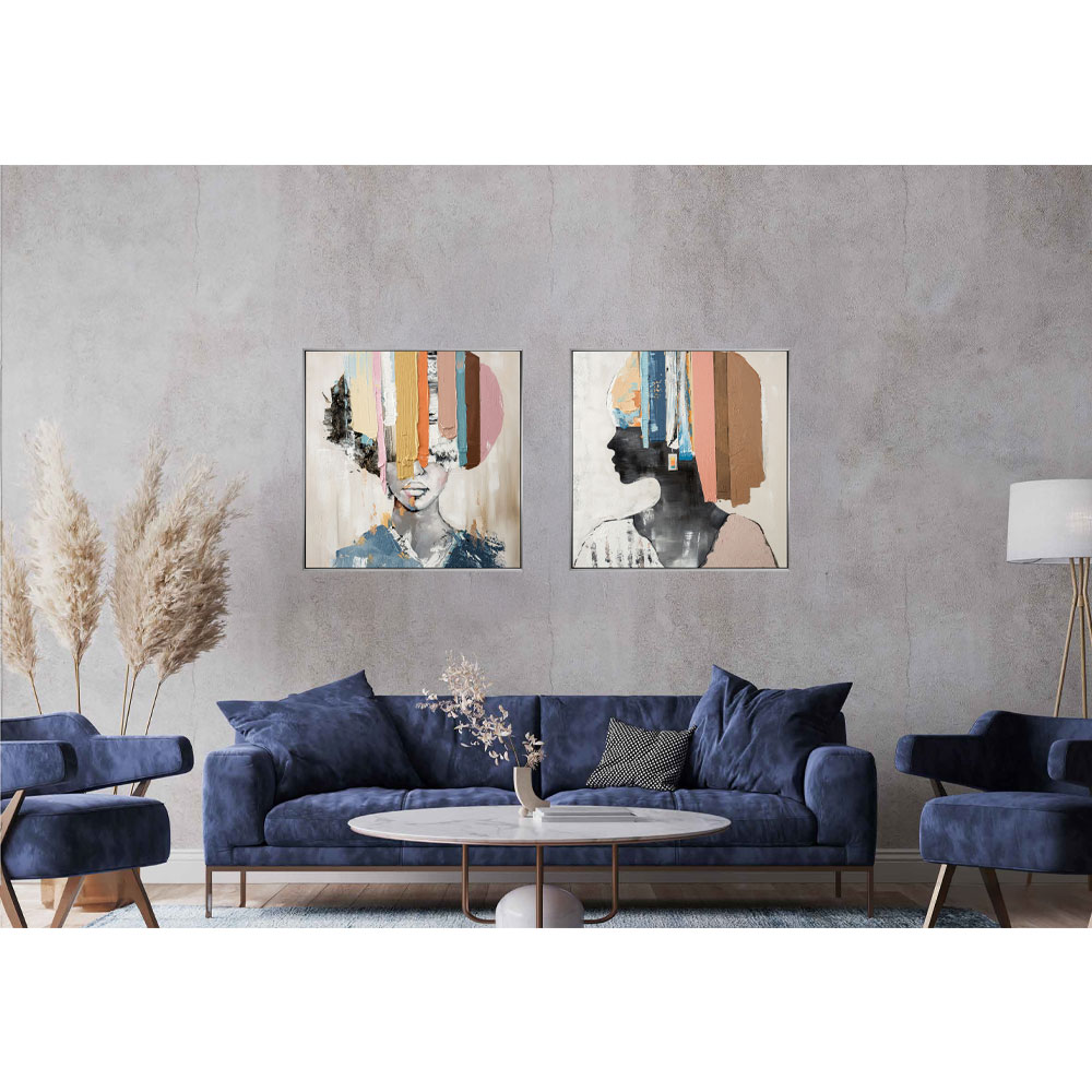 COLORFUL WOMAN PAINTING DECORATIVE 80x80x5 CANVAS MULTICOLOR WOOD SILVER