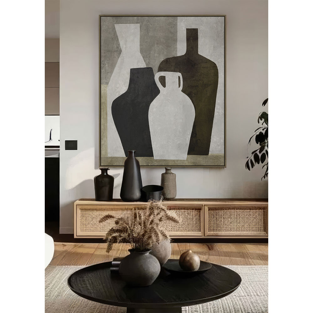 Ο πίνακας CROCKS παρουσιάζει μία καλλιτεχνική σύνθεση από αγγεία σε μίνιμαλ ύφος, με πολυχρωμικές αποχρώσεις πάνω σε γκρι φόντο. Η εκτύπωση σε καμβά και η φυσική ξύλινη κορνίζα προσδίδουν αυθεντικότητα και μοντέρνο χαρακτήρα. Με διαστάσεις 120x100x4 cm αποτελεί εντυπωσιακό focal point σε κάθε χώρο. Ιδανική επιλογή για τραπεζαρία, κουζίνα, καθιστικό ή επαγγελματικούς χώρους με contemporary αισθητική.