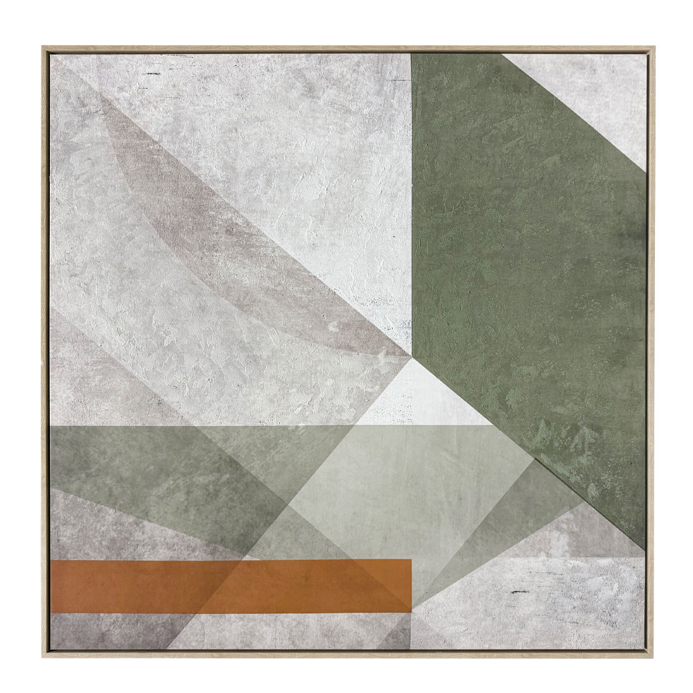Ο πίνακας LALU ξεχωρίζει για τη μοναδική χρωματική του σύνθεση, συνδυάζοντας stone grey, πράσινο και πορτοκαλί σε καθαρές γεωμετρικές επιφάνειες. Με εξωτερική διάσταση 102,6x102,6x4,3 cm, λειτουργεί ιδανικά ως statement square piece, ιδανικό για μεγάλους τοίχους και art-focused projects. Πλαισιωμένος με κορνίζα από PS και ξύλο, προσφέρει minimal, αρχιτεκτονικό χαρακτήρα. Ιδανική επιλογή για ξενοδοχειακά projects και υψηλής αισθητικής χώρους.