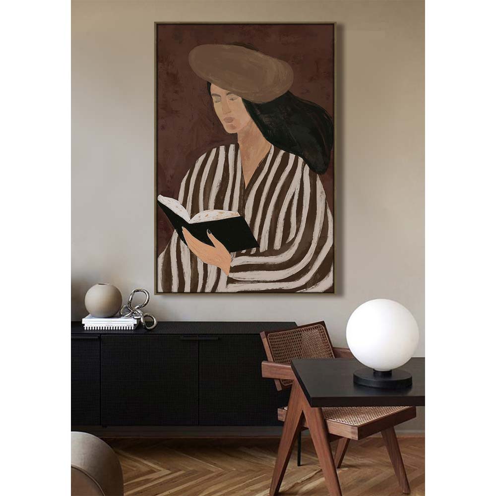 Ο πίνακας LITERARY CALM αποδίδει την απόλυτη ηρεμία μέσα από μια φιγούρα που διαβάζει, δημιουργώντας αίσθηση προσωπικής φυγής από την καθημερινότητα. Η φυσική κορνίζα και οι γήινες αποχρώσεις προσδίδουν ζεστασιά και minimal αισθητική. Ταιριάζει ιδανικά σε reading nooks, υπνοδωμάτια, καθιστικά, αλλά και σε βιβλιοθήκες ή ιδιαίτερους επαγγελματικούς χώρους.