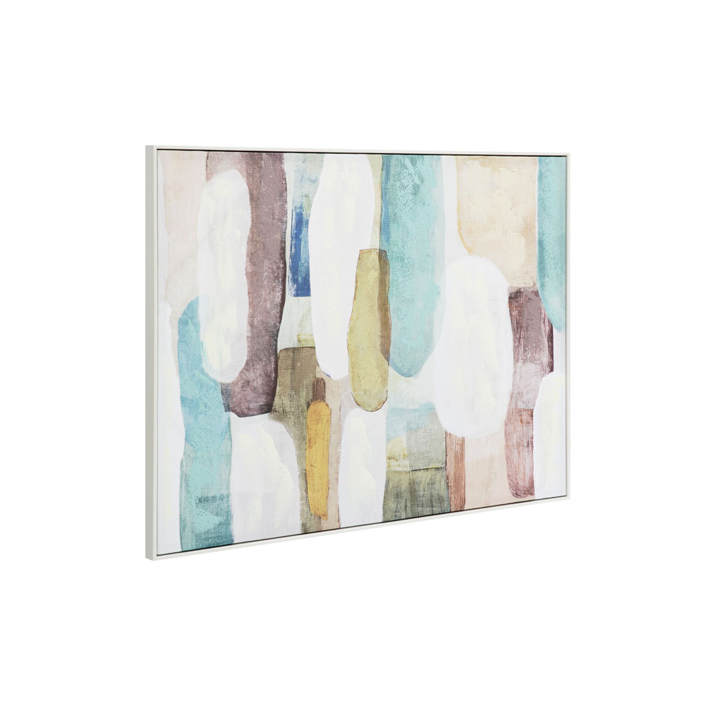 Ο πίνακας MINT AIR είναι τυπωμένος σε καμβά και τοποθετημένος σε λευκή ξύλινη κορνίζα που αναδεικνύει τις pastel πολυχρωμίες του. Οι απαλές πινελιές σε αποχρώσεις του mint, του aqua και του nude δημιουργούν ανάλαφρη, αέρινη διάθεση. Με διαστάσεις 90x120x4 cm, αποτελεί σημείο αναφοράς σε μεγάλους και φωτεινούς χώρους. Ταιριάζει απόλυτα σε σαλόνια, υπνοδωμάτια, dining rooms, αλλά και επαγγελματικούς χώρους όπως καφέ, ξενοδοχεία και γραφεία που θέλουν να αποπνέουν φρεσκάδα και αισιοδοξία.