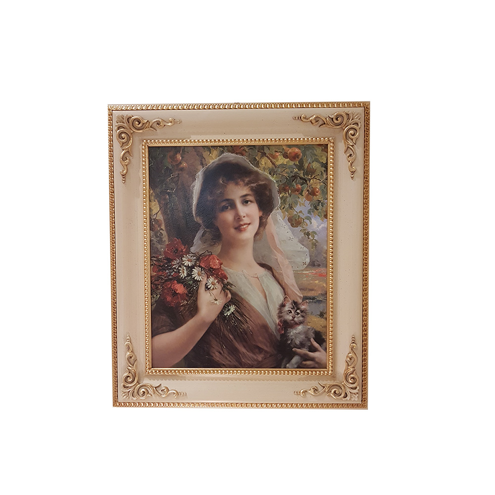Ιταλικός πίνακας με εκρού/χρυσή ξύλινη κορνίζα διάστασης 57x67 εκ. σχέδιο α - 5388A