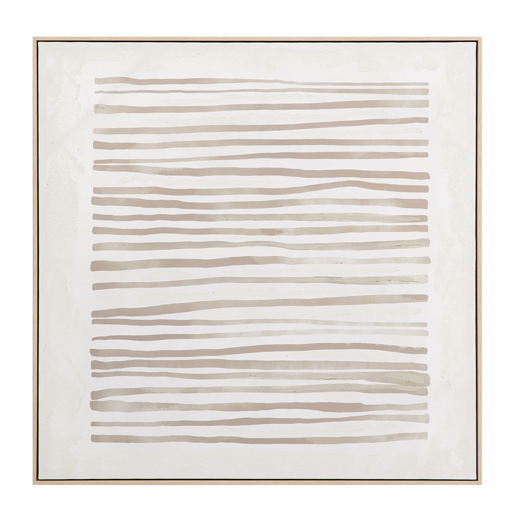 Ο πίνακας RAYA B, σε καμβά με φυσική ξύλινη κορνίζα, δημιουργεί έναν καθαρό minimal χαρακτήρα μέσα από τις λεπτές καφέ γραμμές του. Η σύνθεση παραπέμπει σε ισορροπία και τάξη, ιδανική για χώρους που θέλουν να αναδείξουν κομψότητα. Με διαστάσεις 100x100x4 cm, αποτελεί statement piece για μεγαλύτερους τοίχους. Ταιριάζει σε καθιστικό, χώρους γραφείων ή μοντέρνα ξενοδοχειακά περιβάλλοντα.